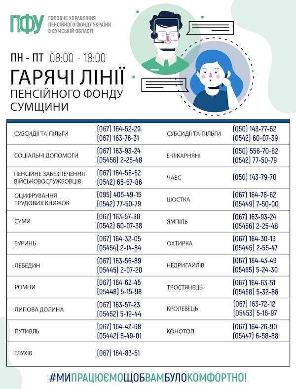 Контакти спеціальних гарячих ліній ПФУ Сумщини: