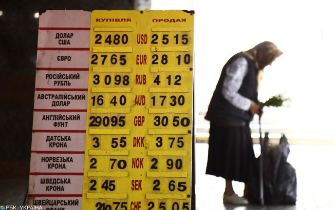На наличном рынке средний курс покупки доллара составляет 25,09 (25,07 - 16 августа), продажи - 25,35 (25,34 - 16 августа) грн за доллар. Средний курс покупки евро составляет 27,74 (27,76 - 16 августа), продажи - 28,23 (28,26 - 16 августа) грн за евро. Средний курс покупки рубля составляет 3,51 (3,52 - 9 августа), продажи 3,90 (3,92 - 9 августа) грн за 10 рублей.